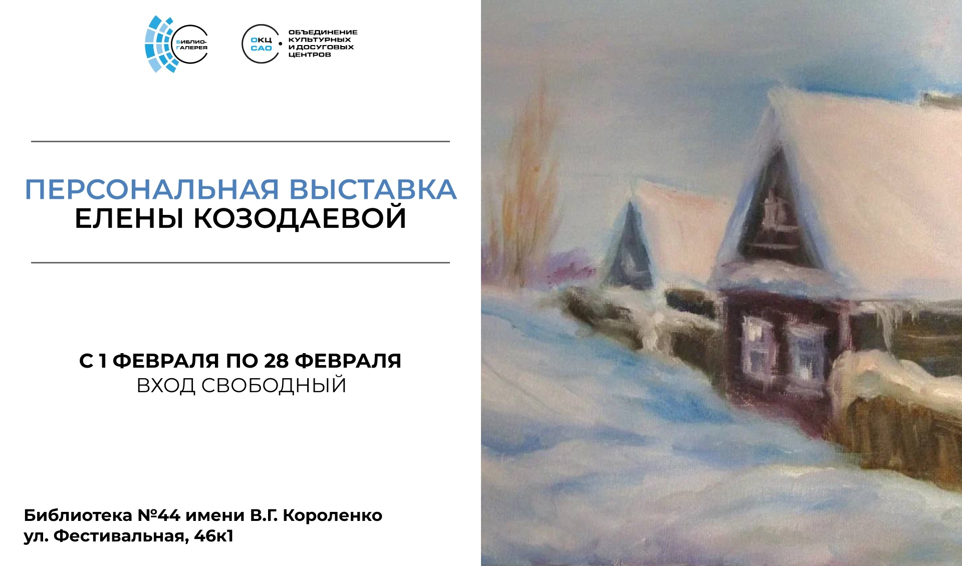 1 февраля в Библиотеке №44 имени В.Г. Короленко открывается выставка Елены Козодаевой «Зимние узоры» – тихий и внимательный разговор с зимой.