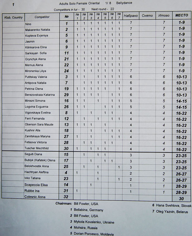 Протокол отборочного тура Чемпионата мира по танцу живота